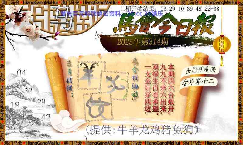 314期: 鸡【09.33】羊【11.23】猴【10.46】 猪【31.43】狗【20.32】牛【17.29】 |